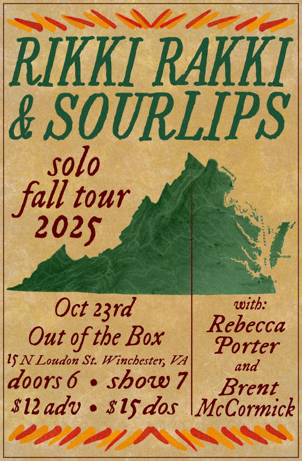 Thu Oct 23 2025 Rikki Rakki & Sour Lips with Rebecca Porter and Brent McCormick 7:00 PM All Ages TICKETS